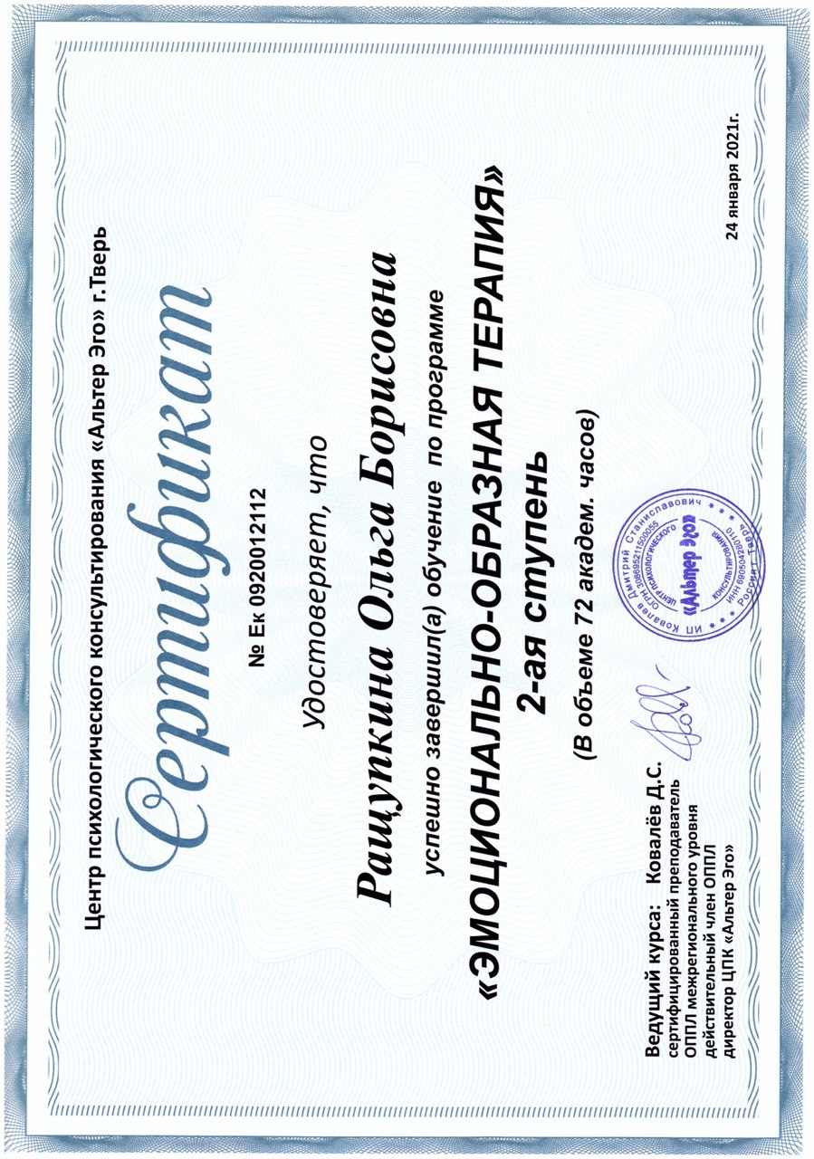 Для того, чтобы поддерживать свой профессиональный уровень, я постоянно прохожу обучение, супервизию, личную терапию. Считаю это необходимым.
